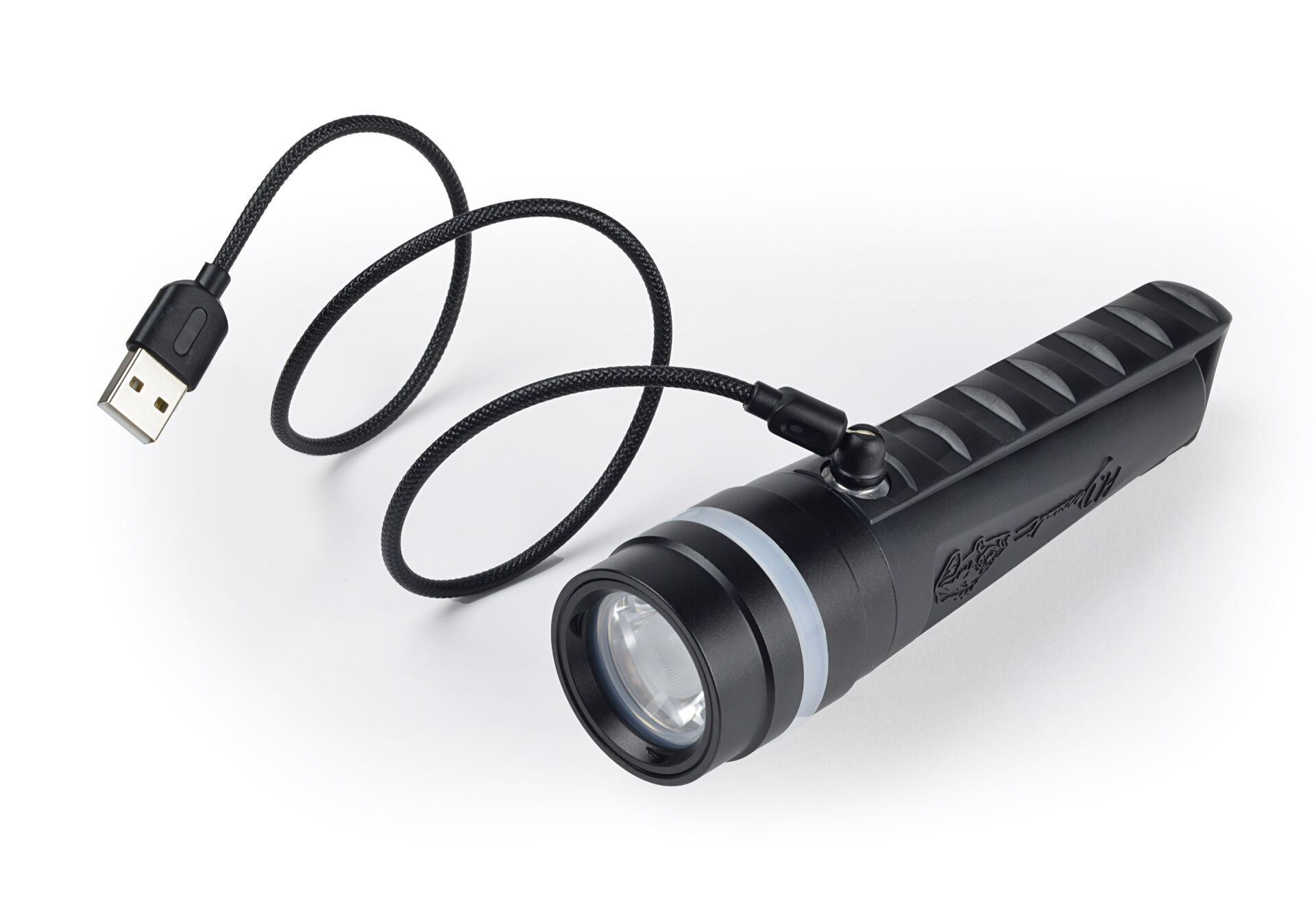 Linterna de buceo recargable por conexión magnética monta un led de última generación de 1500 lúmenes/ unos 24.000 lux a 1m que proporciona una excelente iluminación durante el uso en el agua.