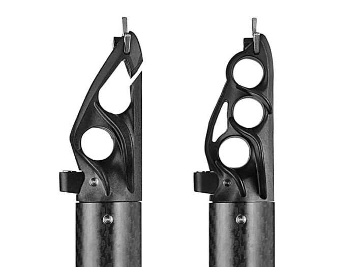I fusti del Fenix Carbon sono realizzati in 100% fibra di carbonio con guida asta integrato. Lo spessore dei fusti è di 1.5mm con diametro 30x27mm. Oltre agli O-ring, la tenuta stagna dei fusti è garantita da appositi tappi in silicone. Le aste, realizzate in acciaio inox AISI301, sono da dia. 6.5mm per i modelli 75, 90 e 100 e da ∅ 7.0mm per i modelli 115 e 130. Gli elastici montati di serie sono i Primeline Grey legati ∅ 14mm.